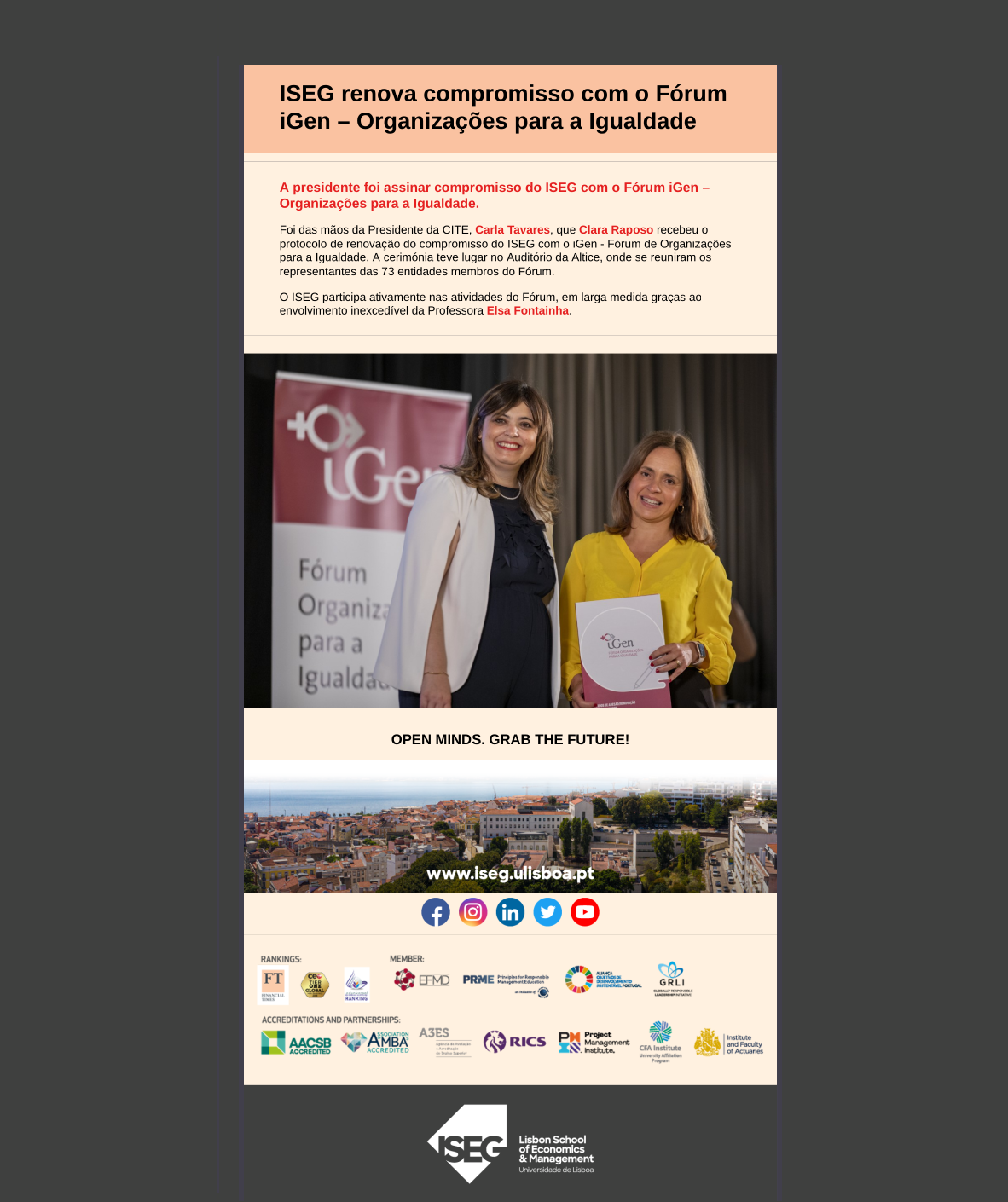 ISEG renova compromisso com o Fórum iGen – Organizações para a Igualdade