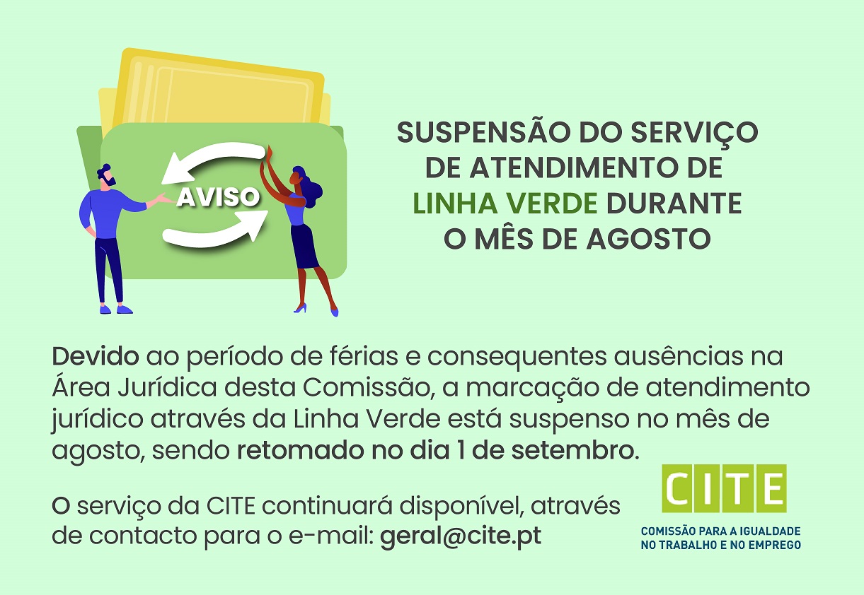 Suspensão do serviço de atendimento de 𝗟𝗶𝗻𝗵𝗮 𝗩𝗲𝗿𝗱𝗲 durante o mês de agosto