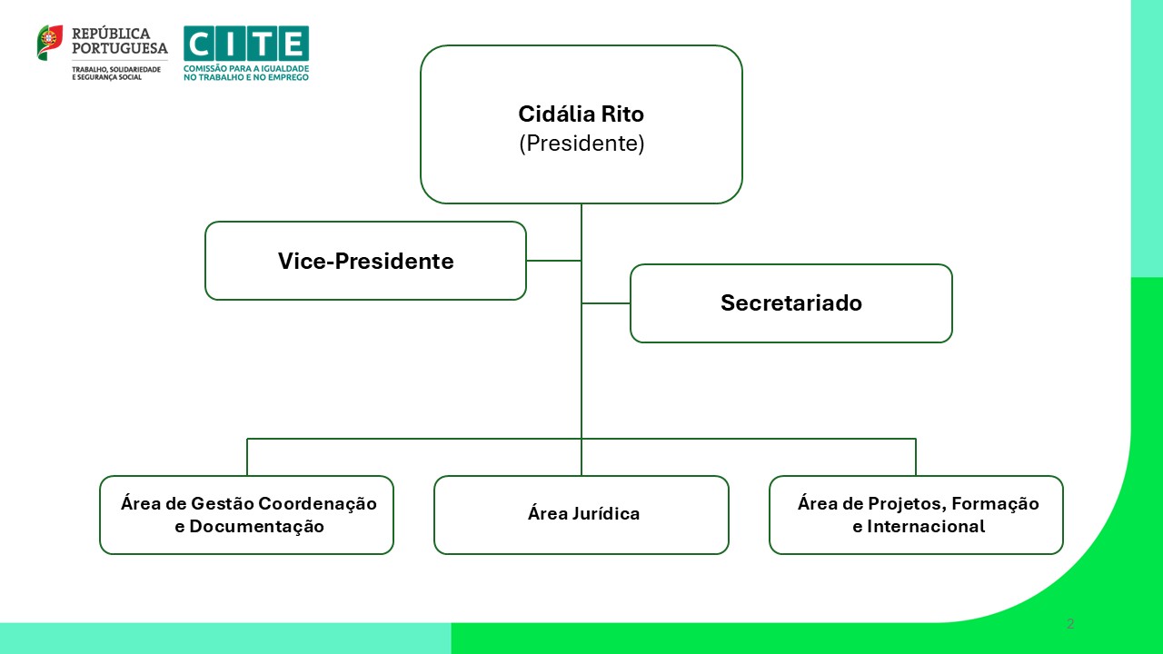 A Comissão para a Igualdade no Trabalho e no Emprego (CITE) fica na dependência da Ministra do Trabalho, Solidariedade e Segurança Social, em coordenação com a Ministra da Cultura, Juventude e Desporto no que respeita à promoção da igualdade e da não discriminação entre homens e mulheres no trabalho e no emprego, nos termos do Decreto-Lei n.º 87-A/2025, de 25 de julho, que aprova o regime de organização e funcionamento do XXV Governo Constitucional.